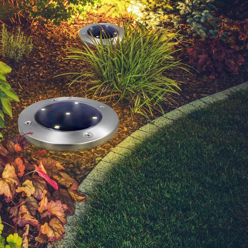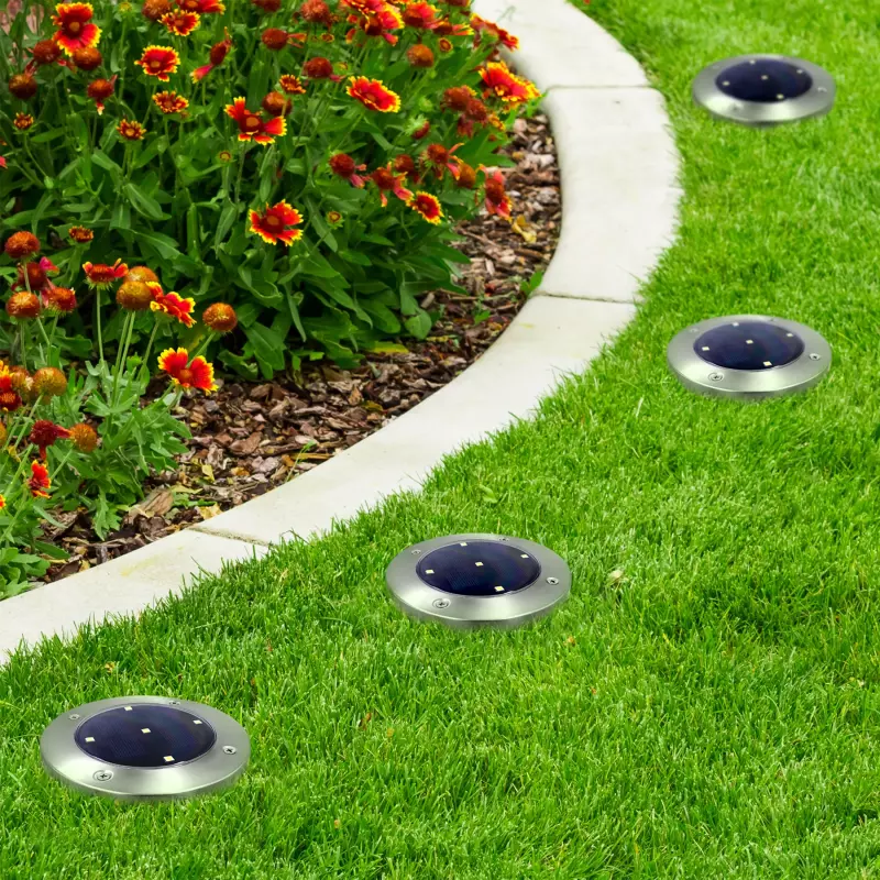 • كل مصباح قرصي مزود بخمسة مصابيح LED موفرة للطاقة توفر ضوءًا أبيض دافئًا لتسليط الضوء على ميزات المناظر الطبيعية الخاصة بك.