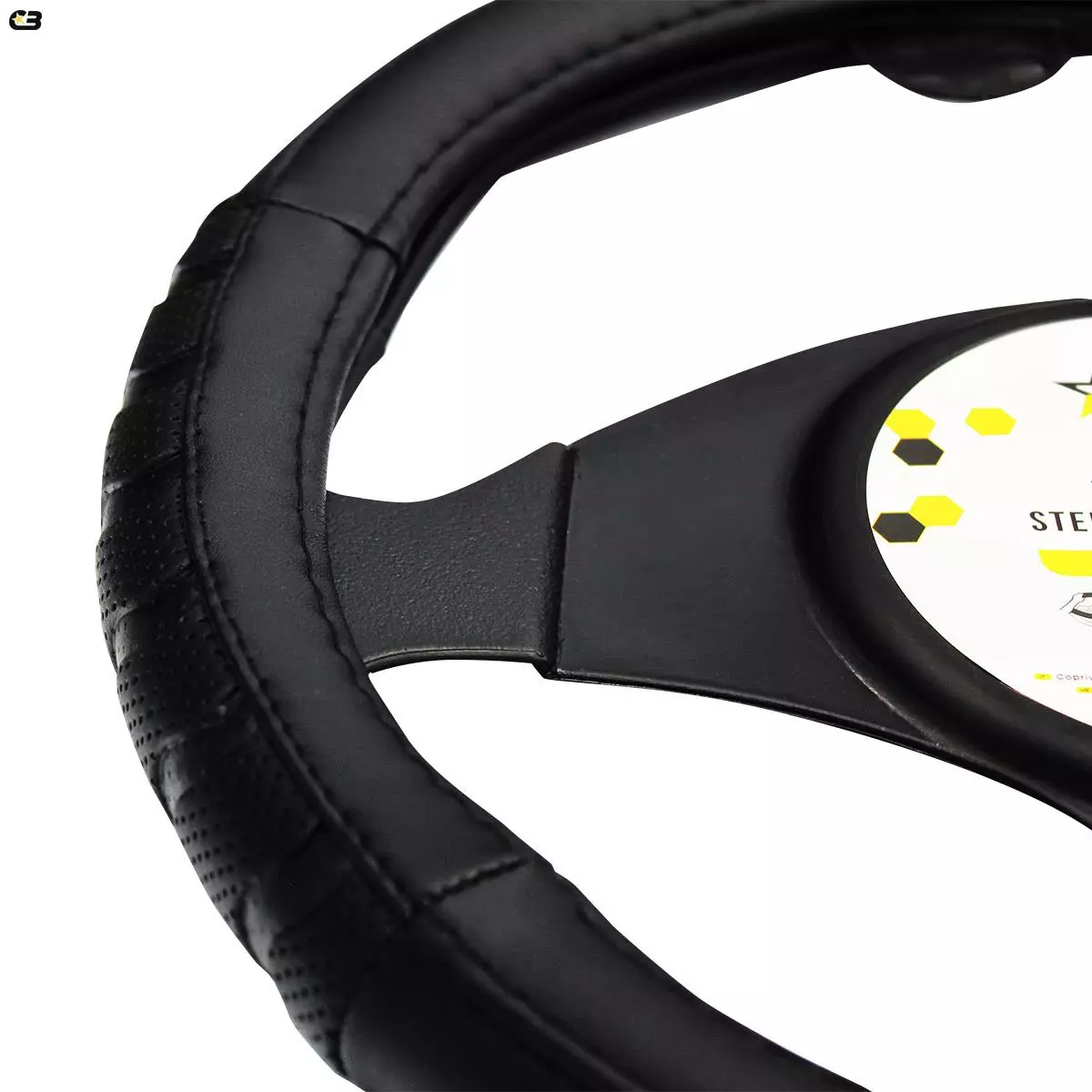 غطاء عالمي للاستخدام لجميع عجلات القيادة التي يبلغ قطرها 37 - 39 سم، باللون الأسود/الرمادي. سهل التركيب. يعمل غطاء عجلة القيادة على تحسين القيادة، ويمنع انزلاق اليدين على عجلة القيادة ويحميها من علامات التآكل.