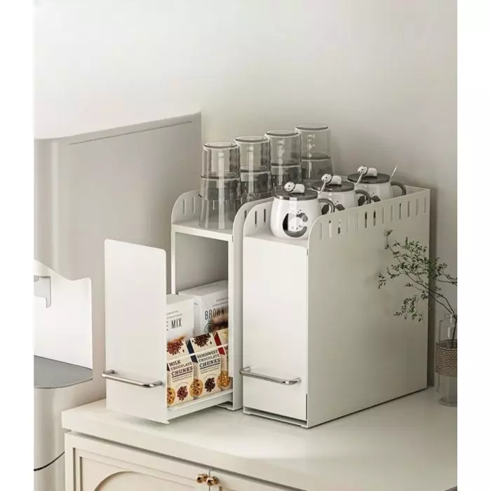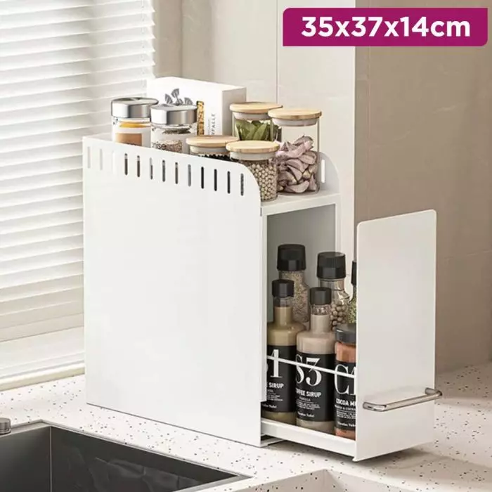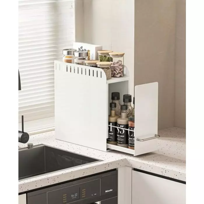 ارفع مستوى تنظيم مطبخك مع التوابل المخفية الأنيقة رف من Hidrrdc باللون الأبيض الأنيق. هذا التصميم العصري الموفر للمساحة يحافظ على التوابل مرتبة في مكانها مع إضافة لمسة من الأناقة إلى مساحة الطهي الخاصة بك. مثالي لأولئك الذين يحبون الأناقة والوظائف!