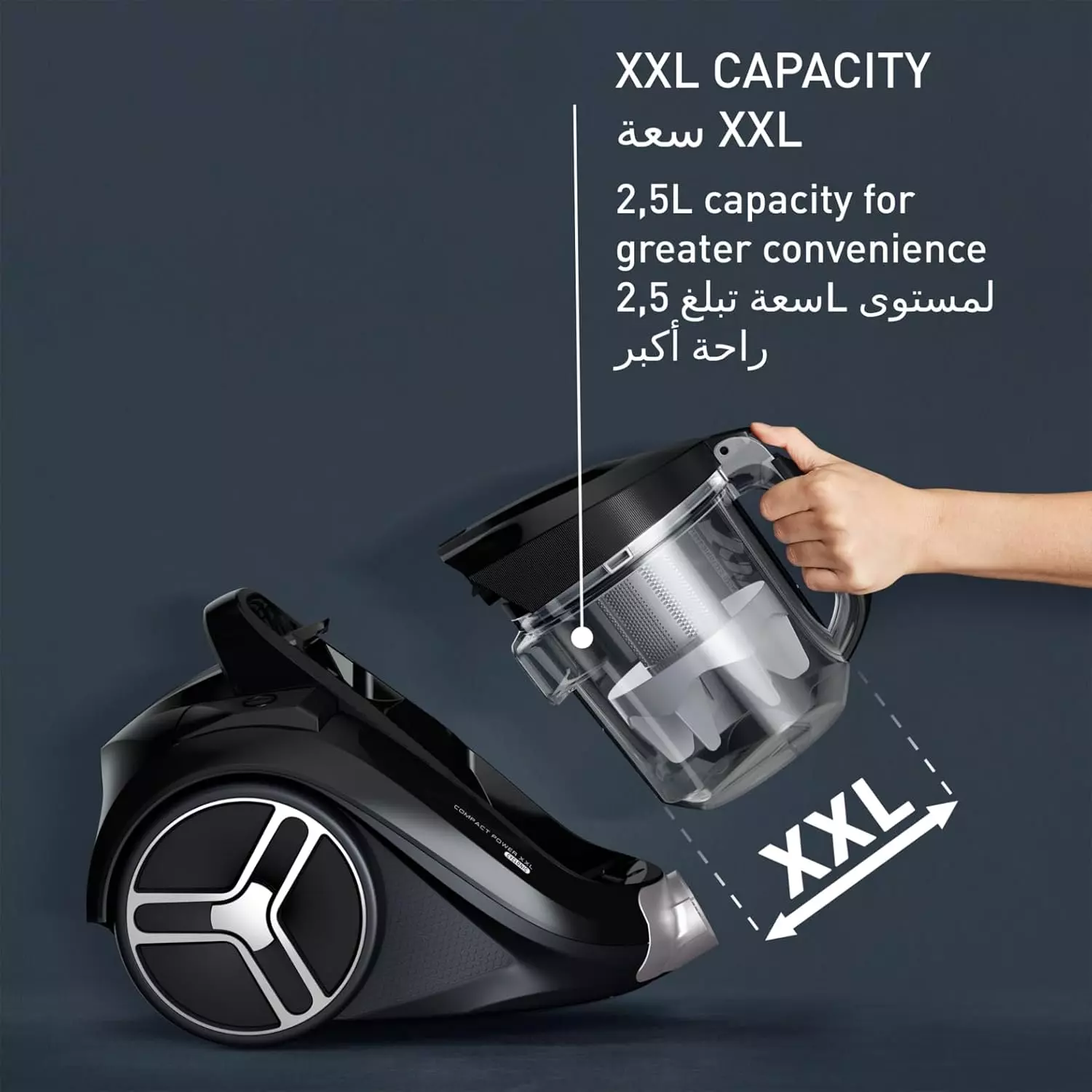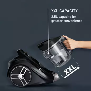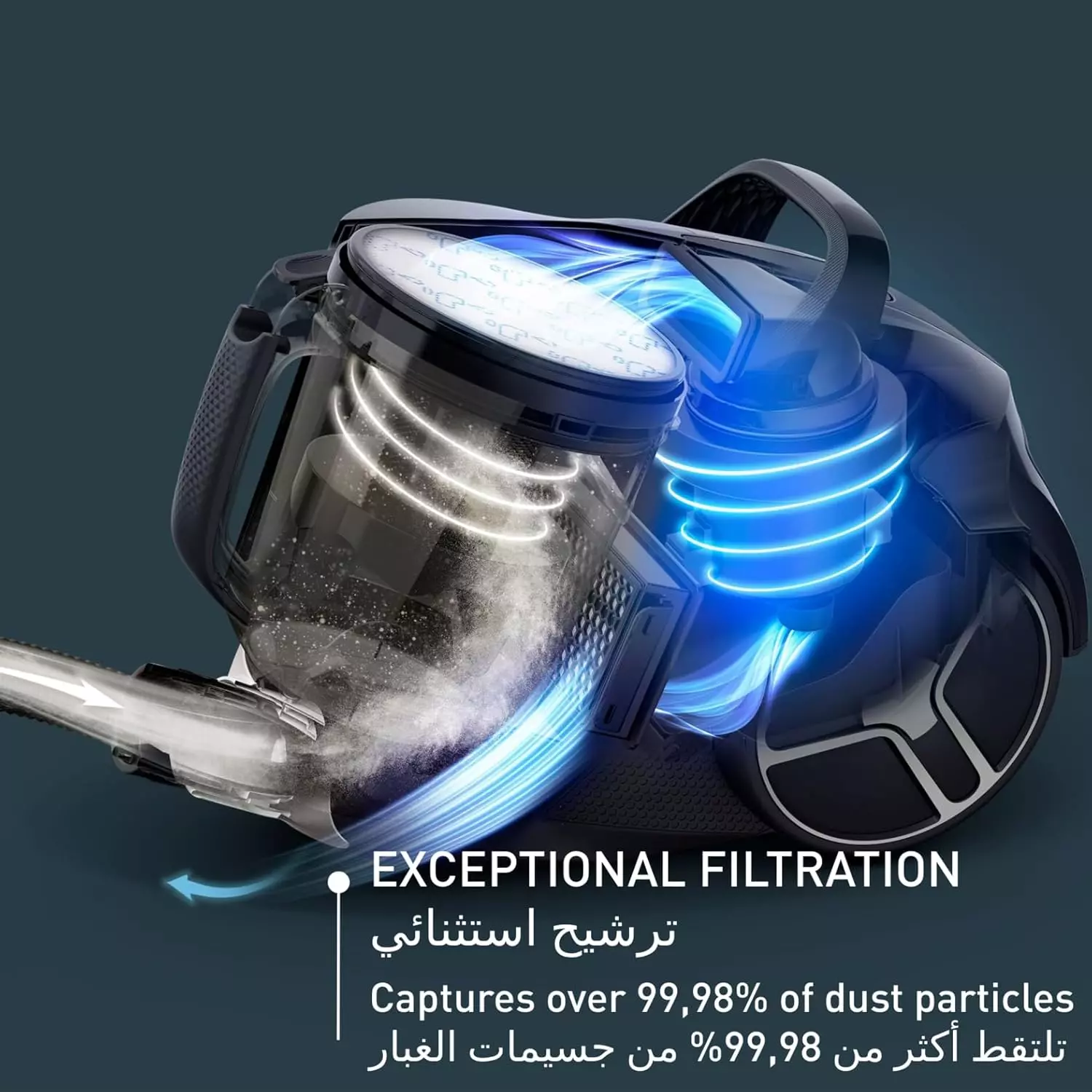 سعة كبيرة جدًا: سعة مذهلة تبلغ 2.5 لتر لتغطية جميع أحجام مساحات المعيشة، لمكنسة كهربائية أسطوانية توفر استقلالية وراحة أكبر