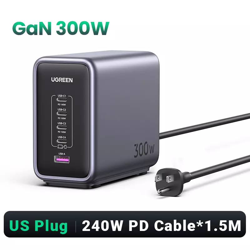 شاحن نيكسود سريع بقــوة 300 وأط مــع 5 منــافذ PD GaN من يـوجرين