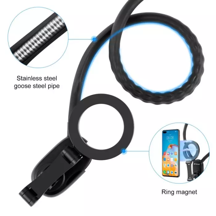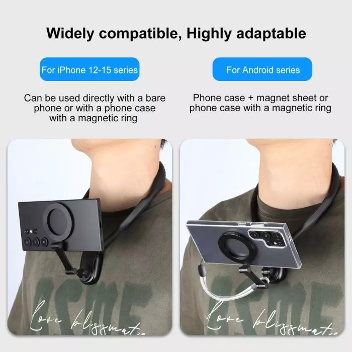 استمتع بالراحة بدون استخدام اليدين مع حامل الهاتف المغناطيسي هذا المصمم لهاتف iPhone 12 وما فوق ومتوافق مع هواتف Android. يتميز برقبة إوزة متينة من الفولاذ المقاوم للصدأ ملفوفة بألمنيوم صلب وسيليكون صديق للبشرة، مما يضمن الراحة والاستقرار. يمكنك التبديل بسهولة بين وضعي الصورة والمناظر الطبيعية والاستمتاع بزوايا تصوير مختلفة. مثالي لمدوني الفيديو والمسافرين والمستخدمين النشطين، يوفر هذا الحامل تصميمًا سريع الفك للتشغيل المبسط وقاعدة مبطنة بالهواء لامتصاص الصدمات.