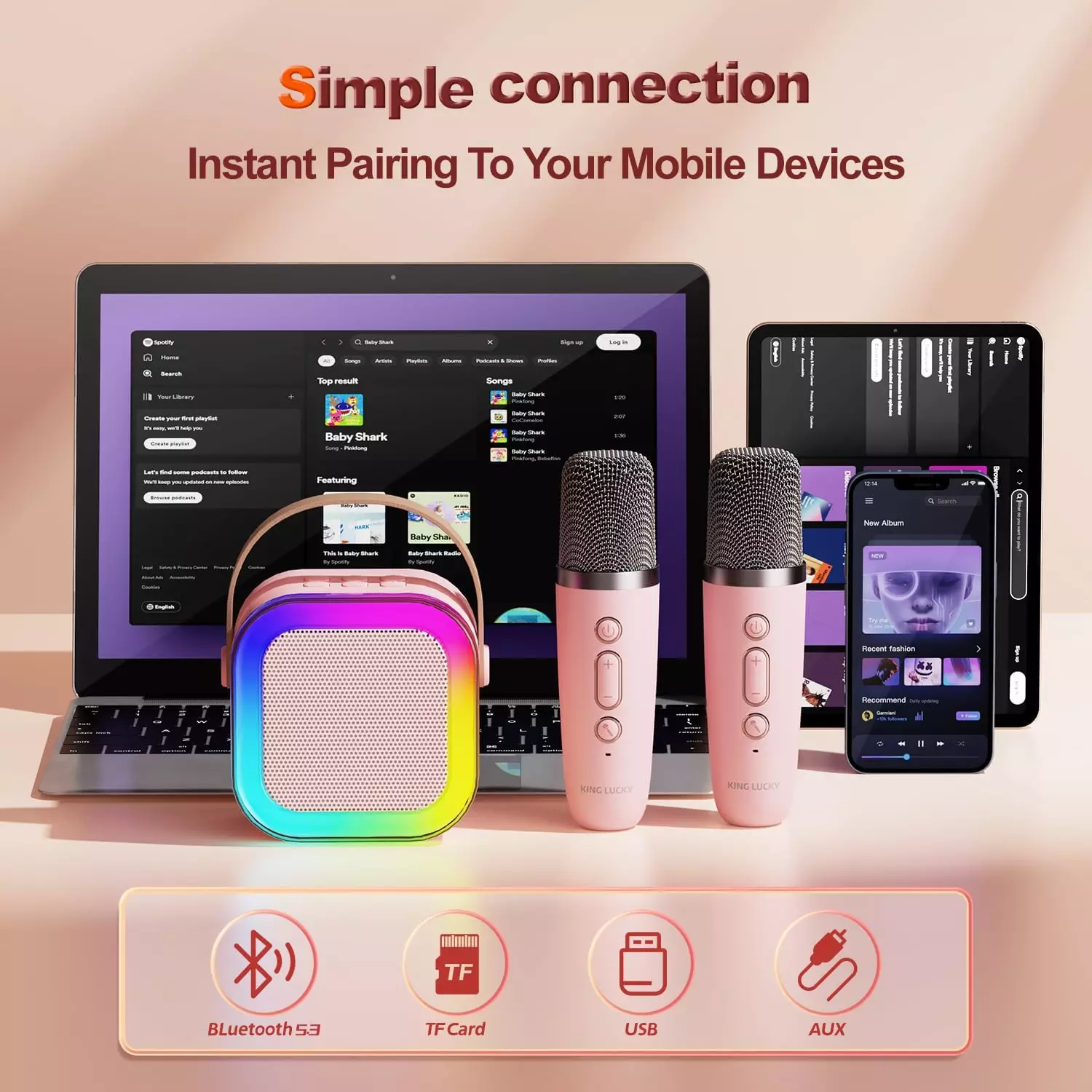 تتميز آلة الكاريوكي بميكروفون البلوتوث للأطفال بتأثيرات إضاءة LED ممتعة وتأتي بألوان مختلفة قليلة لأجواء حفلة ممتعة بغض النظر عن مكان وجودك.